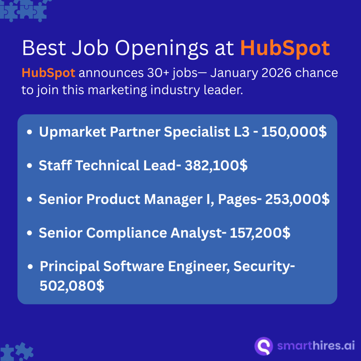 For those interested in leadership and strategic roles, HubSpot jobs also include positions like Principal Strategic Product Partnerships Manager and Principal Program Manager, Communications. These senior roles involve overseeing major partnerships, managing complex programs, and guiding cross-functional teams to deliver impactful outcomes. While salaries for these roles are typically negotiable, they are highly competitive and reflect the high level of responsibility and expertise required.