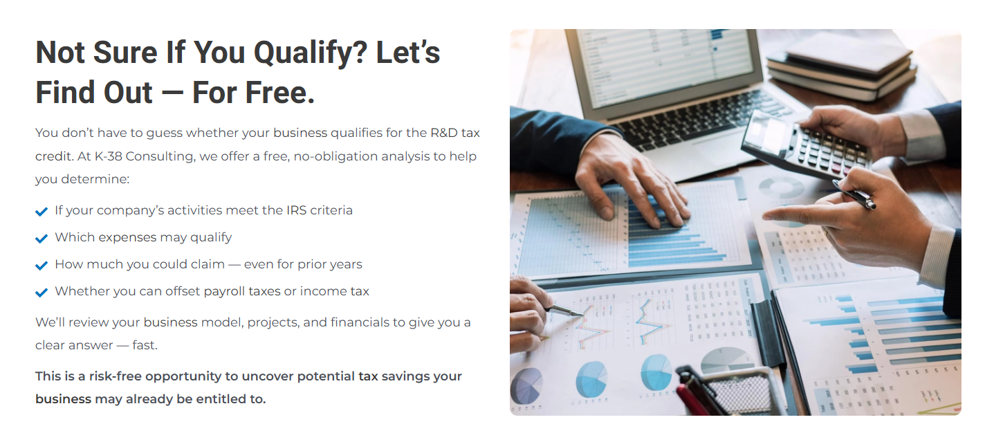 Navigating the R&D Tax Credit process can be complex. K-38 Consulting, LLC specializes in assisting businesses to identify eligible research activities, calculate credits, and prepare all necessary documentation for IRS compliance.